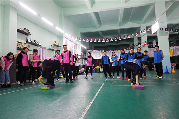 “趣味毛毛蟲(chóng)”大戰(zhàn) “一二一,一二一……” 團(tuán)隊(duì)步伐一致,毛毛蟲(chóng)前進(jìn)的速度才能更快。 為了共同目標(biāo)而努力,提升了團(tuán)隊(duì)精神和團(tuán)隊(duì)意識(shí)。