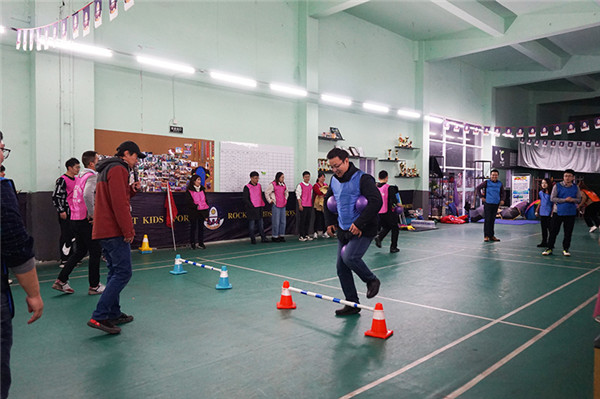 “企鵝漫步”接力 團(tuán)隊(duì)越來(lái)越默契 “加油”、“穩(wěn)住”、“漂亮” 隊(duì)員之間氣氛越來(lái)越融洽